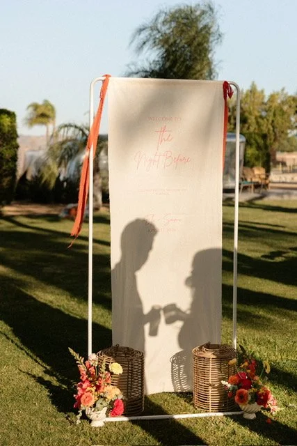 Our offerings focus on two core elements—custom signage and styled backdrops—thoughtfully layered with optional styling enhancements such as draping, dried florals, rugs, lanterns, accent tables, and curated décor pieces. Each piece is designed to stand beautifully on its own or be combined into a cohesive setup, allowing clients to create a look that feels personal, elevated, and timeless.