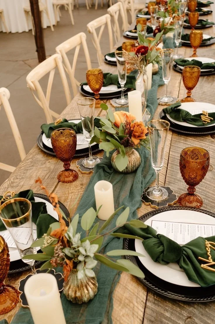 An intimate, curated tablescape designed for up to 30 seated guests.